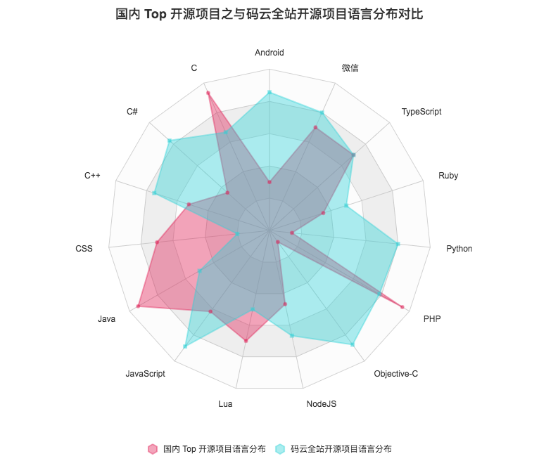 2.3 国内 Top 开源项目之与码云全站开源项目语言分布对比