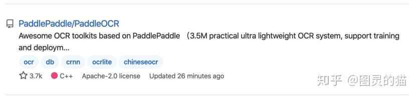 再看看github上排第三的PaddleOCR。飞桨之前我是用过的,毕竟国内能拿的出手的机器学习框架就那么几个。出于这个原因我尝试了一下这个paddlepaddle框架下开源的高精度文字识别模型套件PaddleOCR。看到这大家可能就明白了,开源、高精度,这两点基本就是优图和EasyOCR的结合体了。