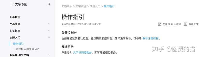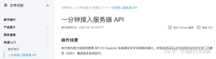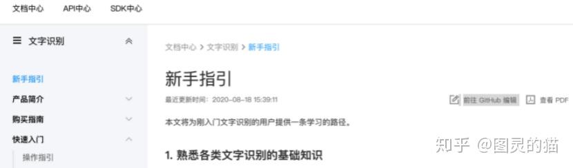 先看官方文档,首先要表扬一点,其他几个OCR工具都是默认用户知道OCR是什么以及具体的定义和应用,但是作为技术文档,应该有规范化、学术化的编写要求,连《同济线代》上来都会讲一下什么是行列式,前面几个ocr的文档等于直接教你怎么高斯消元,虽然学过线代的都能看懂,但观感上有点跳。建议其他厂商都学一下廖雪峰的文档结构,尽量把是什么先讲了,再说怎么做。