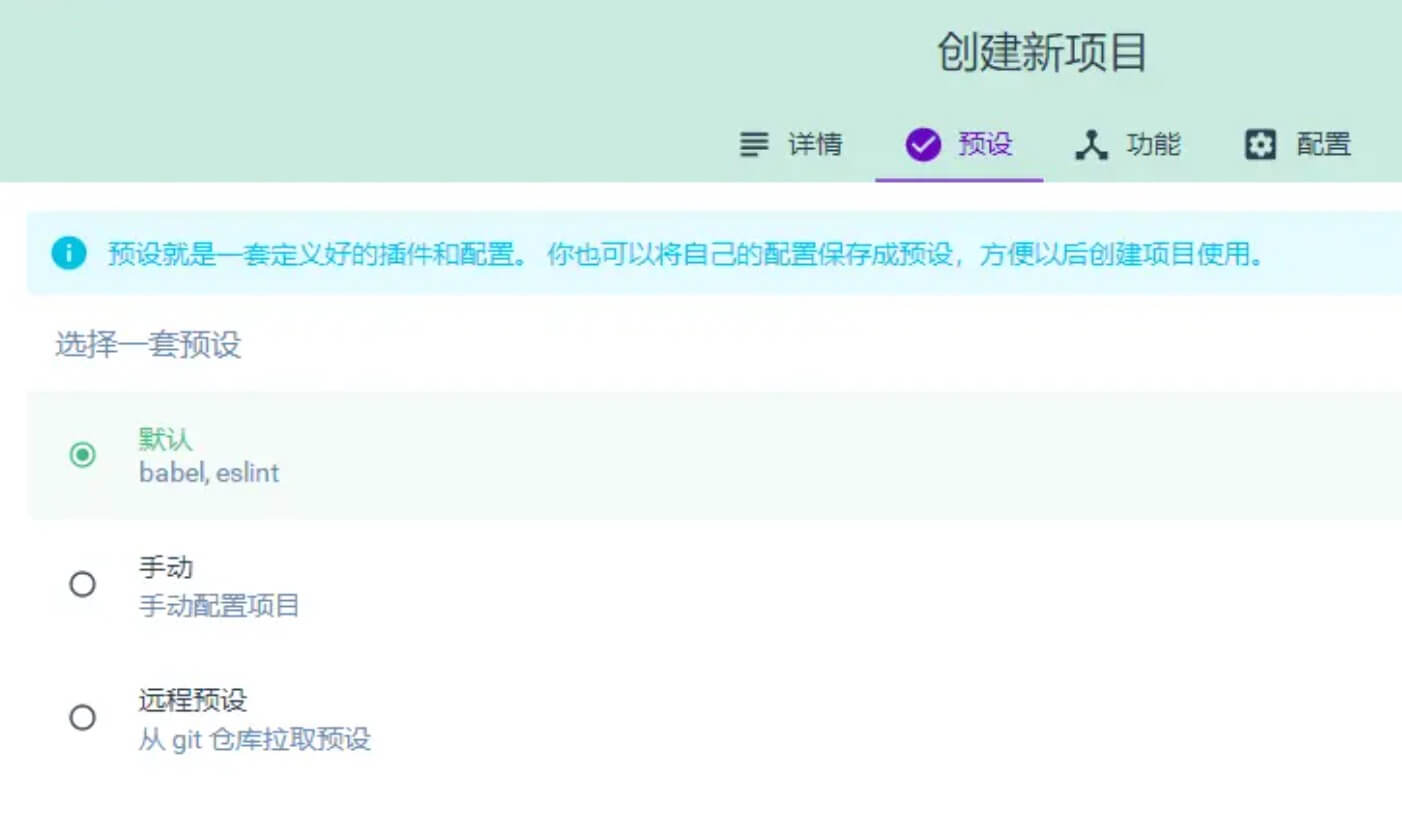 除了使用 vue create 命令创建项目,我们还可以使用可视化创建工具来创建项目。