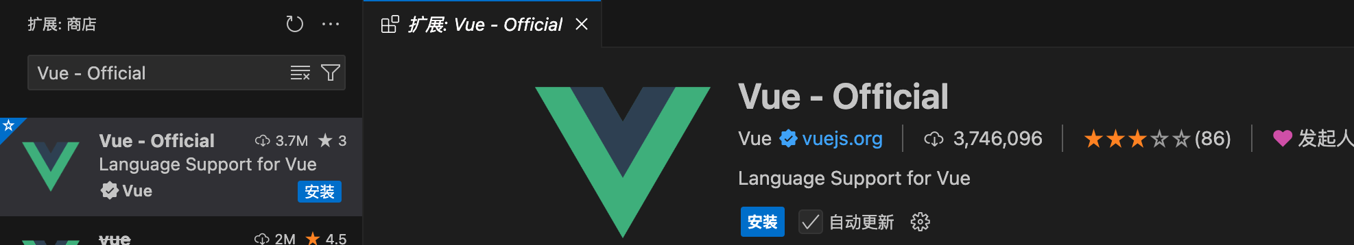 Vue 开发推荐的 IDE 配置是 Visual Studio Code + Vue – Official 扩展: